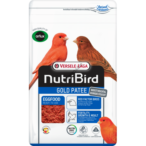 Gold Patee Red Canaries 1кг - мека яйчна храна за червени канари. Подходяща за периоди на изхранване на малки и по време на периода на линеене. Богата на витамини, аминокиселини и протеини. Гарантира превъзходна кондиция. Обогатена с натурален мед. За да се осигури плътен червен цвят е необходимо да се смеси с доза Can-tax или Can-tax да се разреди във водата за пиене.