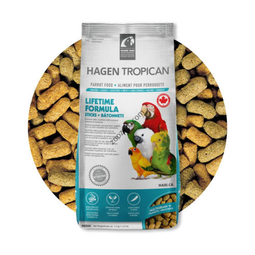 Гранули Тропикан за Папагали - ежедневна формула, пръчици, 1,5 кг. - Hagen Tropican Lifetime Formula for Parrots, Sticks
