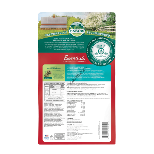 Храна на гранули за Хамстери, Мишки и Джербили, 450 гр. - Oxbow Essentials Hamster & Gerbil