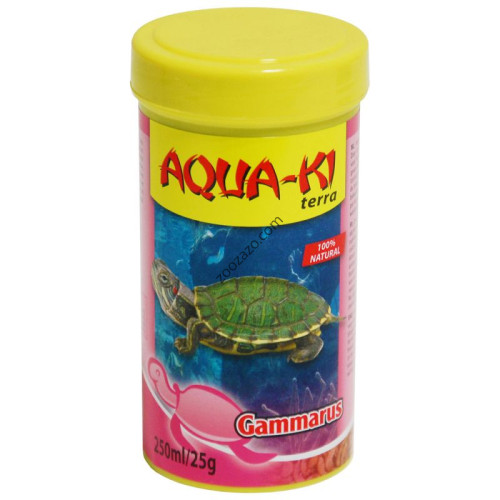 Aqua-Ki Gammarus е 100% натурална храна, съставена от внимателно сушени ракообразни от рода Gammarus. Тази специално подбрана формула е създадена за водни и полу-водни костенурки и осигурява висококачествен източник на протеини, калций и жизненоважни микроелементи.