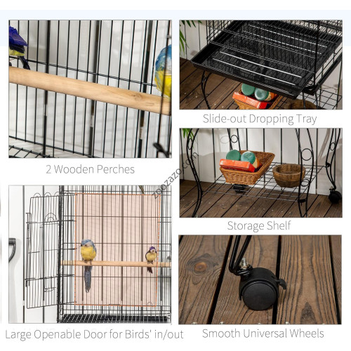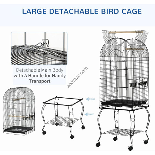 Метална клетка за Папагали с отваряем покрив, със стойка на колела, 51 х 51 х 153 см. - Kojo Bird Cage