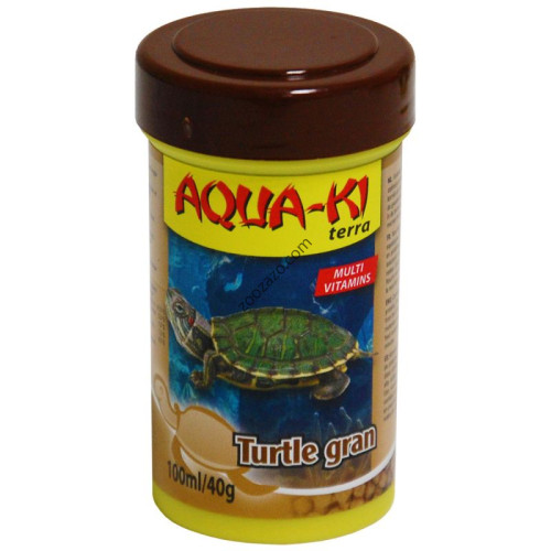 Aqua-Ki Turtle Gran е висококачествена плаваща храна, специално разработена за водни костенурки. Гранулите са лесно смилаеми, богати на протеини и витамини, които подпомагат правилния растеж, жизненост и здравина на черупката.