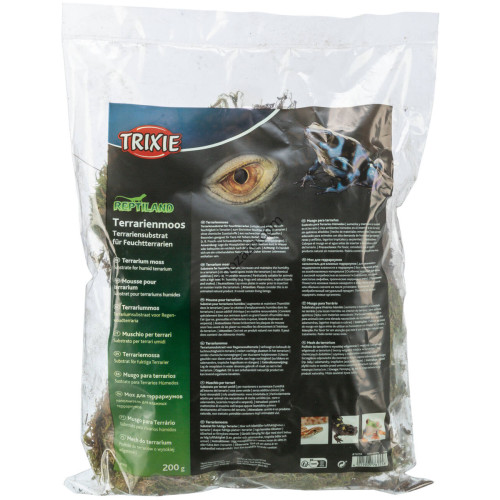 Trixie Terrarium Moss 76155 е натурален, висококачествен мъх (200 г), предназначен за използване в терариуми и влажни среди. Този мъх не съдържа никакви химически добавки, като същевременно подпомага задържането на влага и създава нестереотипен, естествен вид в терариума.